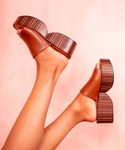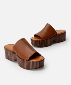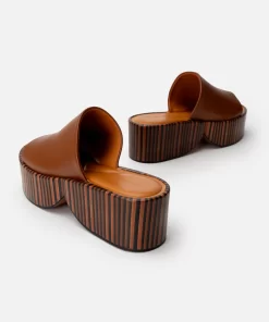 Upper: Wood lambskin / Lining: Black crust lambskin / Sole: Dark brown and black stacked leather platform, arizona sole, black edge
