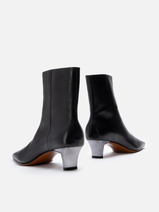 Upper: black smooth calfskin / Lining: black goatskin lining / Sole: brushed gunmetal heel, amber leather sole, black edge