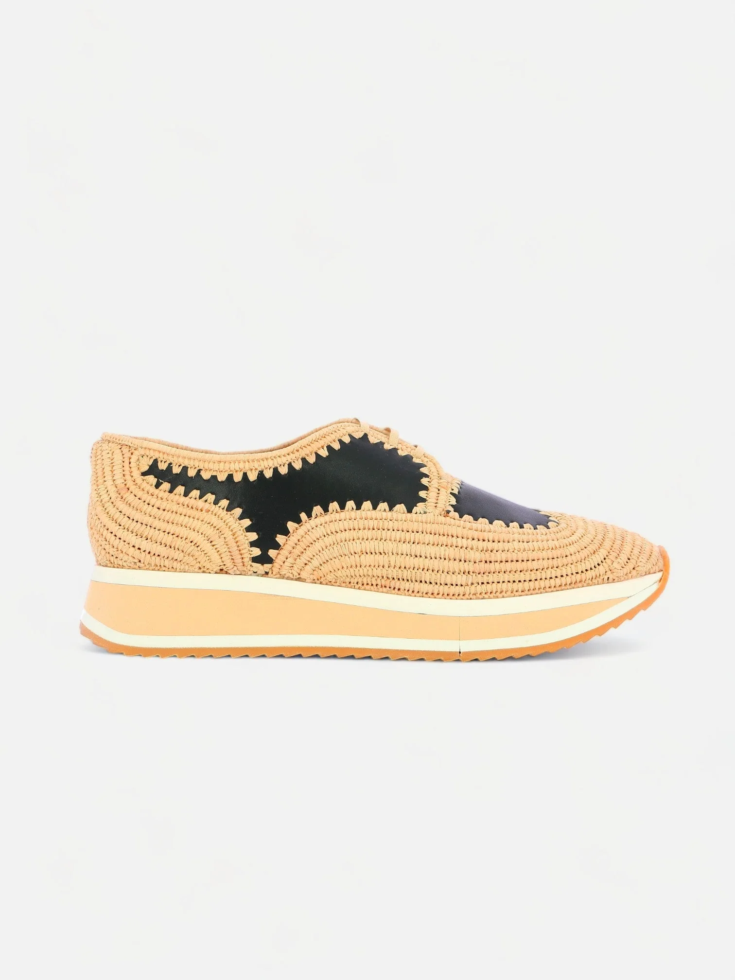 Upper: raffia, smooth calfskin / Lining: goatskin / Sole: EVA