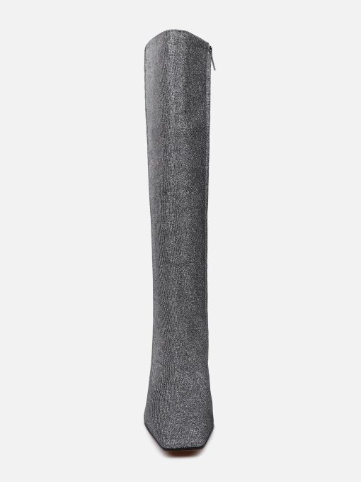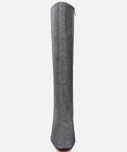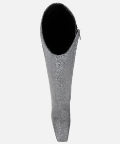 Upper: stone mica fabric / Lining: black goatskin lining / Sole: brushed gunmetal heel, amber leather sole, black edge