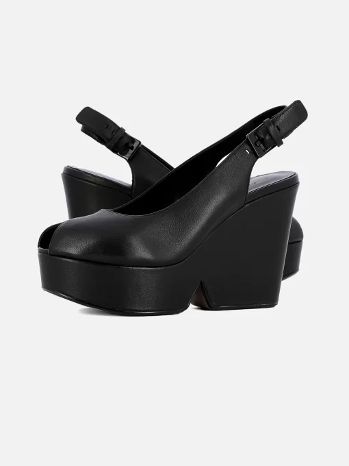 Upper: black lambskin / Lining: black goatskin / Sole: black lambskin covered platform, arizona sole, black edge